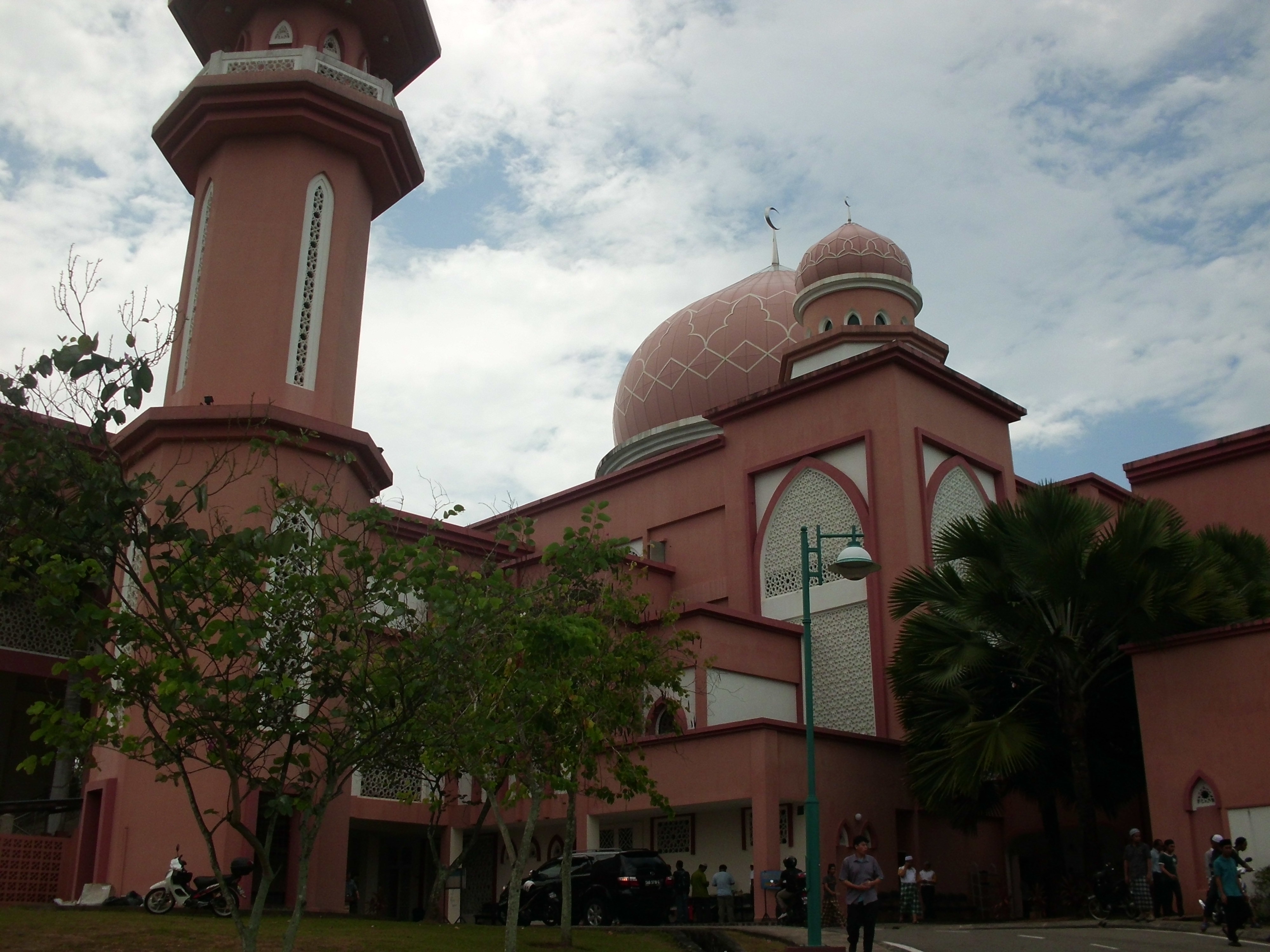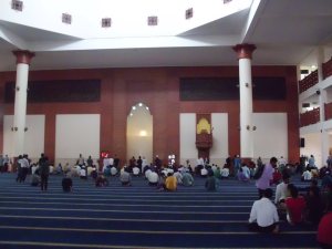 Berbilang 200 meter dari ujung barat waterfront ada sebuah masjid bernama Masjid Bandaraya Kuching. Masjid ini besar sebenarnya, namun tak tampak dari luar. Terhalang kedai-kedai syarikat perniagaan. Pintu masuknya –pun serupa kedai. Tapi ternyata di dalamnya besar. Bentuk masjid dan tatacara beribadah-nya mirip masjid-masjid di Jawa.