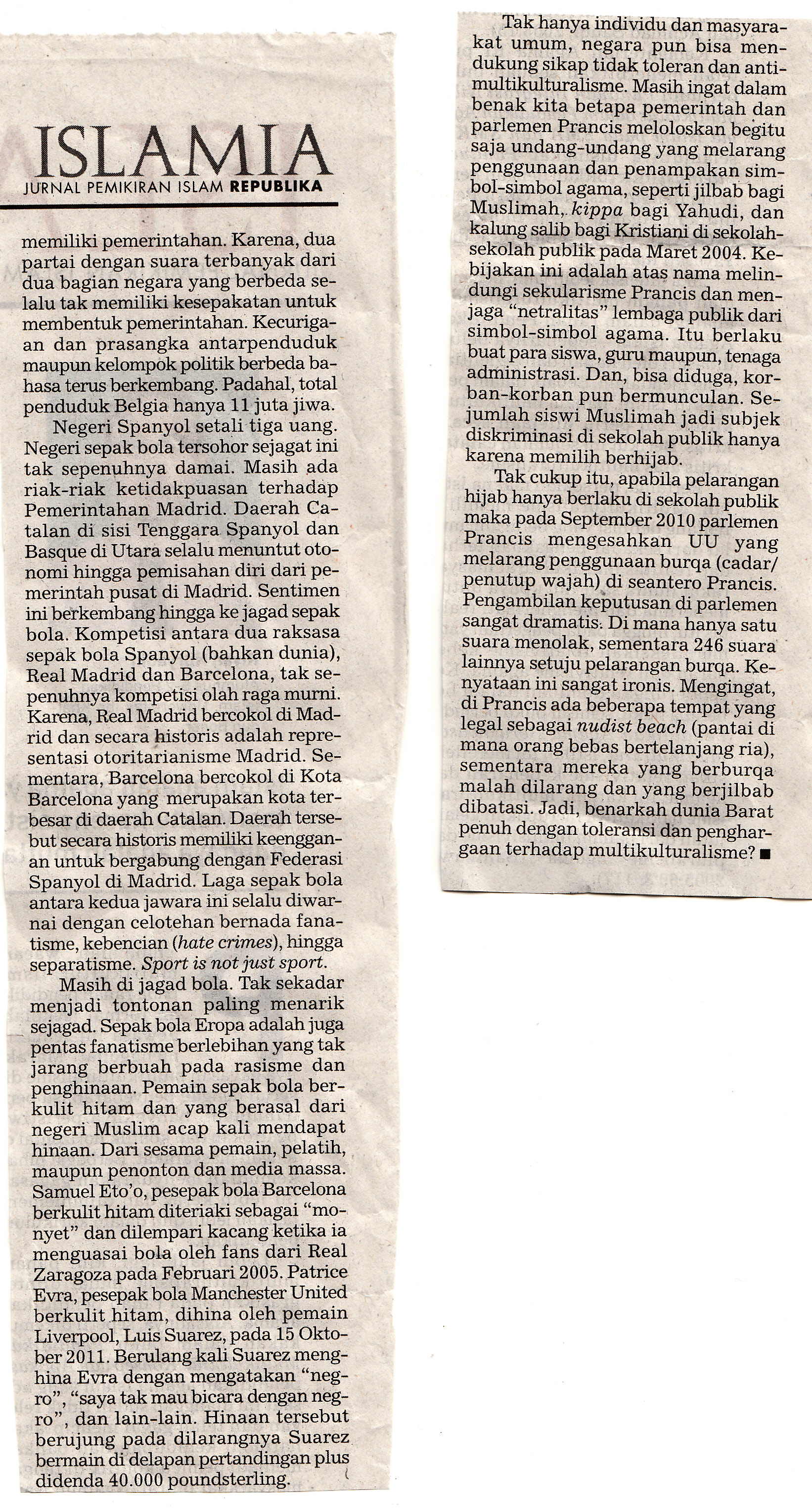 Tulisan Heru Susetyo bersama INSIST di Jurnal Islamia Republika 19 April 2012