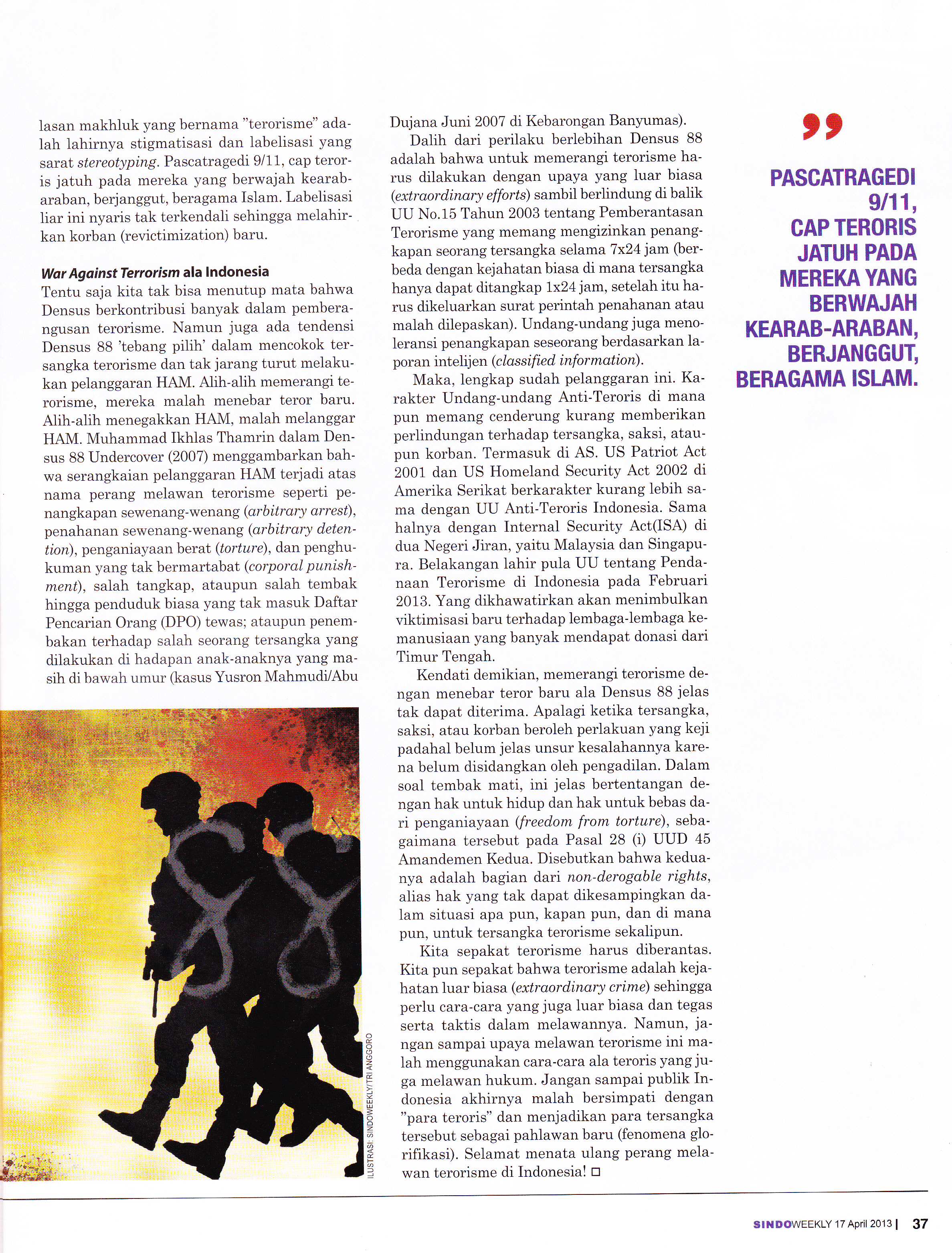 Menarik membaca berita di Pikiran Rakyat 23 April 2013 “Myanmar Melanggar HAM” yang mengulas laporan dari Human Rights Watch (HRW) tentang negara Myanmar yang telah mengobarkan kampanye pembersihan etnis Rohingya, utamanya pada tahun 2012. Dengan bukti adanya kuburan massal dan adanya upaya pengusiran secara paksa yang menyebabkan ratusan ribu warga Rohingya mengungsi.